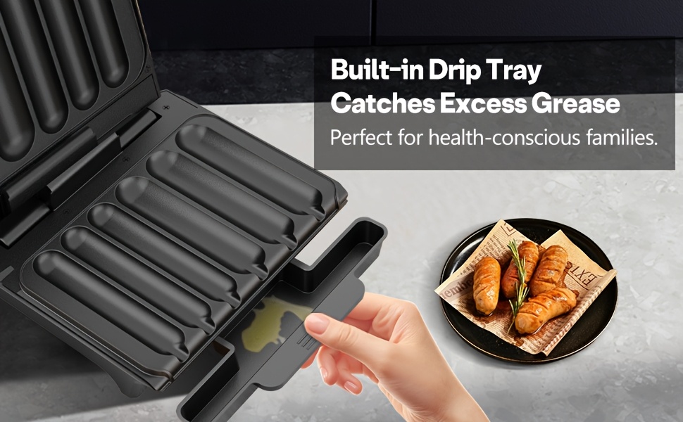 Built-in Drip Tray Catches Excess Grease – Enjoy delicious sausages with less guilt. Perfect for health-conscious families.